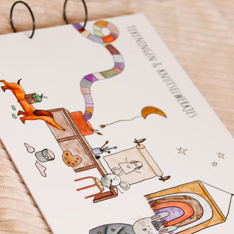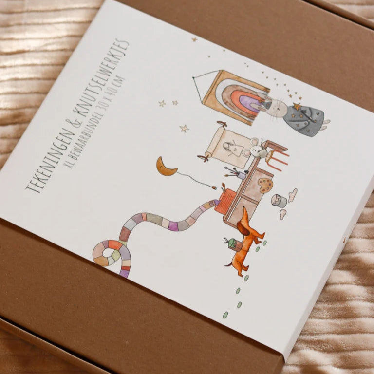 Het eerste zelfgemaakte knutselwerkje, jouw eerste Moeder- of Vaderdag schilderijtje,... Waar bewaar je alle tekeningen en knutselwerkjes waar jouw kindje mee thuiskomt? De creativiteit van jouw kindje op de opvang of op school is iets om vast te leggen. Deze prachtige bewaarbundel is speciaal gemaakt om de waardevolle tekeningen en knutselwerkjes van jouw kindje in op te bergen. Zo creëer je een mooie map voor later.