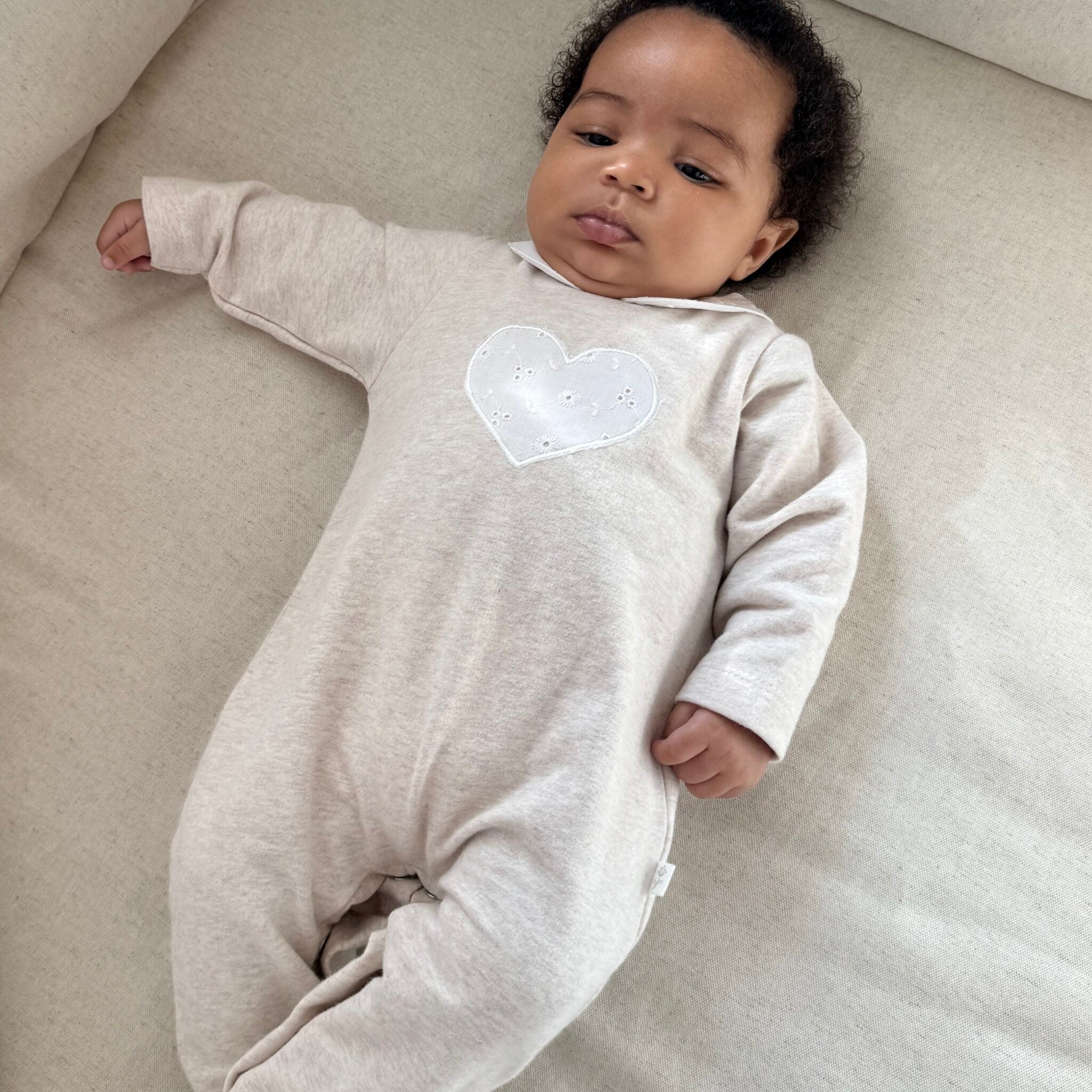 - Materiaal: Naturel ecru met kanten hart vooraan,