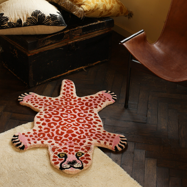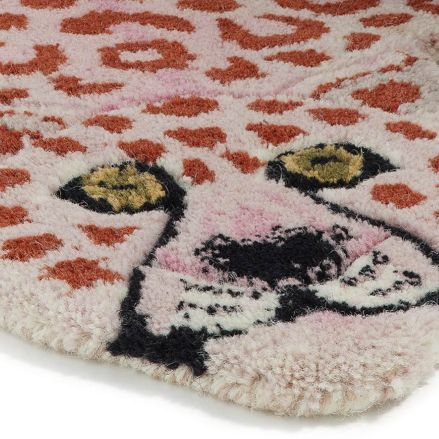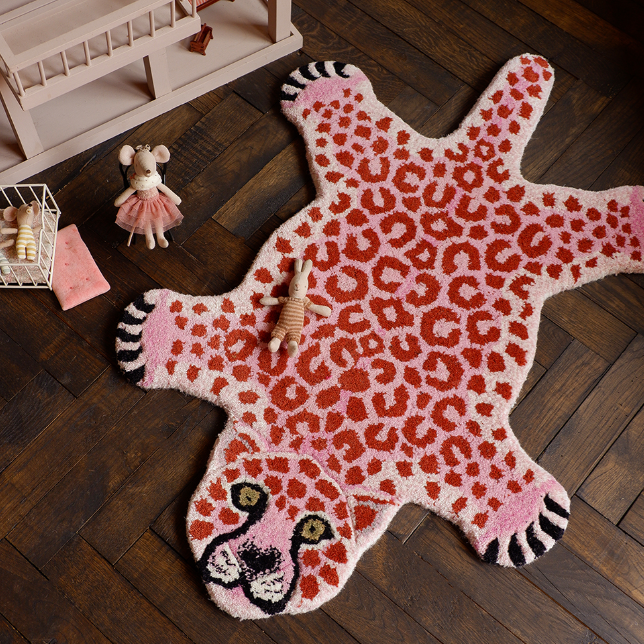 Dit Pinky Leopard vloerkleed maakt deel uit van de Tapis Amis vloerkleden collectie. Het is een eigenzinnige reeks schattige, gekke dieren die je gegarandeerd een glimlach op je gezicht toveren. Dit vloerkleed is handgemaakt in India van 100% wol, met een katoenen achterkant. Een prachtige eyecatcher in de kamer van jouw kindje of in de speelkamer.