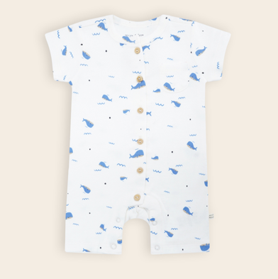 Ontdek dit schattige boxpakje met walvisprint in het blauw, een lief en duurzaam pakje voor jouw kindje. Het pakje is gemaakt van 100% biologisch katoen en voelt super zacht en puur aan op de babyhuid, wat het een veilige en beschermende keuze maakt voor jouw kindje. Het speelse ontwerp heeft knoopjes aan de voorkant en aan de binnenkant van de beentjes wat het verschonen van jouw kindje eenvoudig maakt. Dit knusse pakje biedt optimale bewegingsvrijheid en comfort voor jouw kindje.