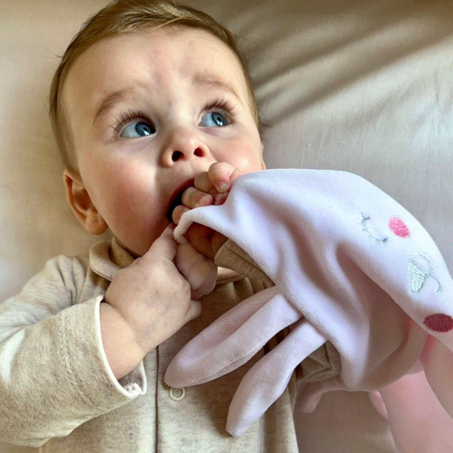 Tip! Draag het knuffeldoekje een middagje of nacht bij je. Jouw kindje vindt dan extra troost en ontspanning bij het knuffeldoekje wat naar zijn papa of mama ruikt.