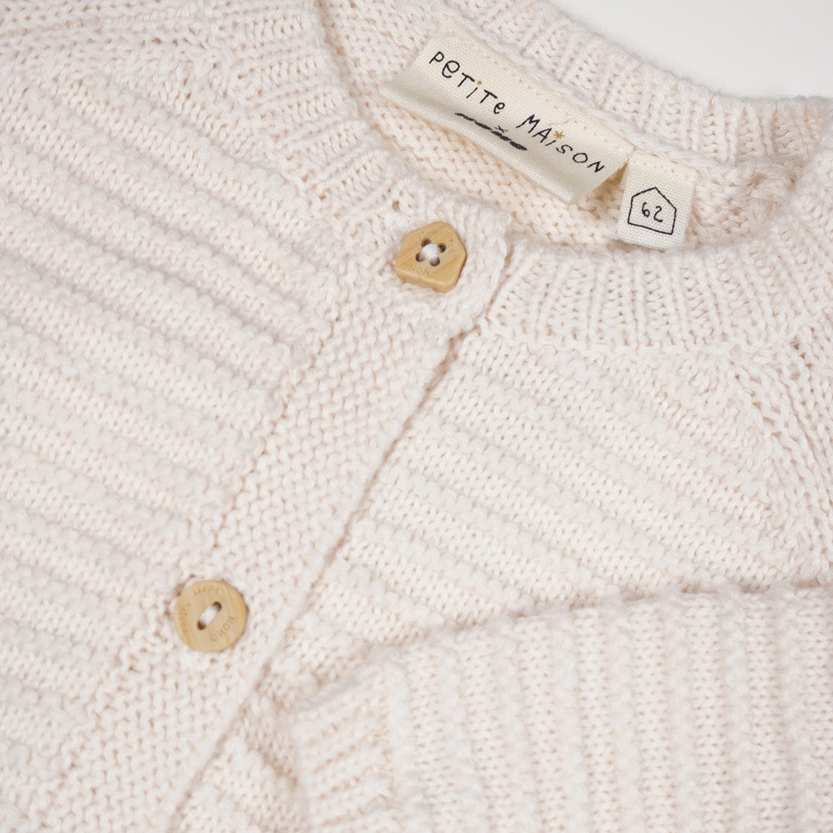 Dit lieve grofgebreide vestje van Petite Maison is gemaakt van een zacht katoenmix. Deze stof voelt zacht aan op de huid van jouw kindje. Ideaal voor dagelijks gebruik Hierdoor kan jouw kindje zich comfortabel en vrij bewegen en de wereld gaan ontdekken. Het vestje heeft een knusse ronde hals, lange mouwen en een handige knoopsluiting. Je creëert binnen een handomdraai een leuke outfit. Door de neutrale kleur kun je eindeloos de leukste combinaties maken. Super leuk te combineren met een mooie romper of long sleeve uit de nieuwe collectie Petite Maison. Maar ook erg leuk te combineren met het bijpassende broekje en mutsje in dezelfde kleur en stof.