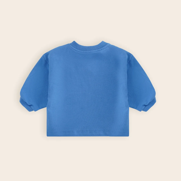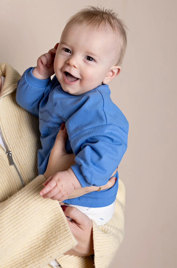 Deze lieve sweater heeft een prachtige blauwe kleur. Een tijdloze essential, gemaakt van 95% biologisch katoen en 5% elastaan. Dit zorgt voor een super zacht en comfortabel gevoel op de huid van jouw kindje. De speelse golfjesprint op de voorkant geeft deze sweater een speelse uitstraling. Perfect voor dagelijks gebruik en zorgt voor ultieme bewegingsvrijheid. Super leuk te combineren met de bijpassende broekjes van Petite Maison.
