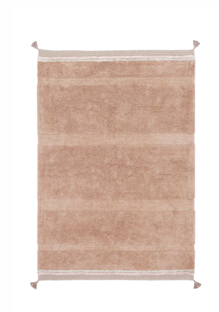 Dit mooie katoenen tapijt van Lorena Canals in een zachte kleur is een mooi accessoire in de kamer van jouw kindje. Het tapijt is aan de randen versierd met twee kleurlijnen en dunne geborduurde lijn en afgewerkt met kleine kwastjes op de hoeken.Een voordeel van dit vloerkleed is dat je niet bang hoeft te zijn met kleine kinderen in huis dat dit vloerkleed niet praktisch is! Dit mooie vloerkleed kun je namelijk eenvoudig wassen in de wasmachine. De tapijten zijn handgemaakt en dus uniek! Verkrijgbaar in verschillende maten en kleuren.