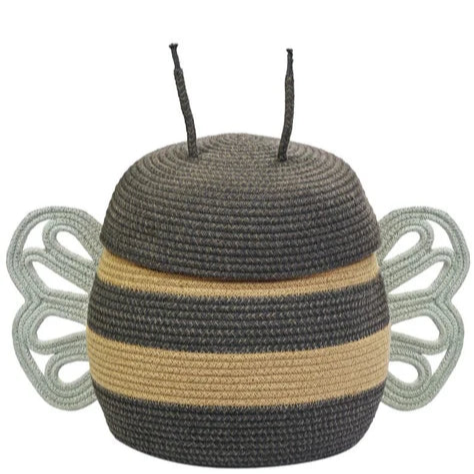 Deze schattige, duurzame opbergmand in de vorm van een bij is een unieke eyecatcher in de kamer van jouw kindje. De opbergmand is handgemaakt van gevlochten koorden van gerecyclede PET-flessen bedekt met katoenen garens, waarbij rijen honing worden gecombineerd met gemengde donkergrijze koorden. Opruimen wordt met deze leuke opbergmanden een feestje.