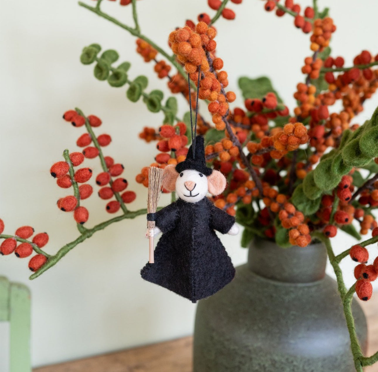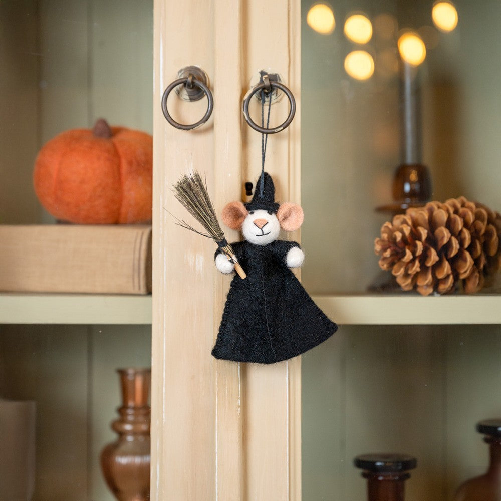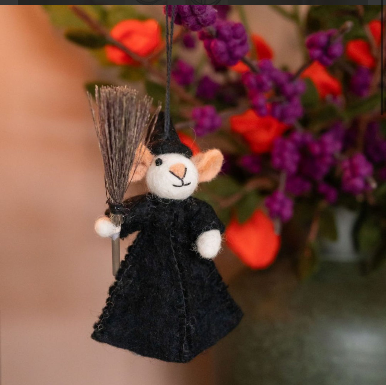 Met deze leuke hanger van een muisje als heks krijg je helemaal zin in de herfst en Halloween. Leuk als decoratie in de kinderkamer, in een leuke herfsttak of op de seizoenstafel.