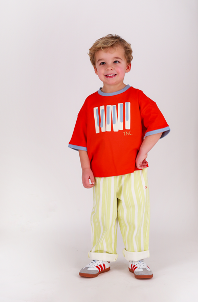Dit prachtige basic t-shirt van de nieuwe collectie van de The New Chapter is gemaakt van heerlijk zacht materiaal. Deze stof voelt zacht aan op de huid van jouw kindje waardoor jouw kindje zich comfortabel en vrij kan bewegen en de wereld kan gaan ontdekken. Je creëert binnen een handomdraai een leuke outfit. Dit mooie rode t-shirt straalt energie en speelsheid uit. De heldere kleur maakt dit shirt een echte blikvanger, terwijl de zachte stof zorgt voor een comfortabele pasvorm. De contrasterende boorden en leuke print maken hem helemaal uniek. Hij is perfect voor dagelijks gebruik en makkelijk te combineren met een leuke short of broek.