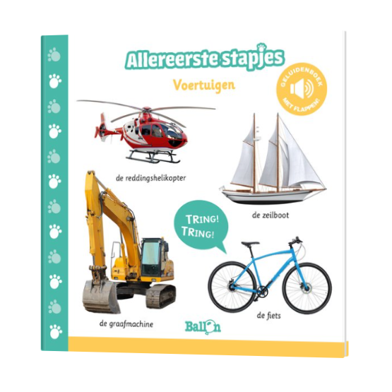Ik heb twee wielen en een mooie felle kleur. Doe het flapje open om te ontdekken wie ik ben! Met dit geluidenboek ontdekt jouw peuter allerlei voertuigen. Elke keer je kind een flapje opent, hoort hij het geluid van het voertuig dat zich erachter verstopt. Voor uren kijk- en luisterplezier!