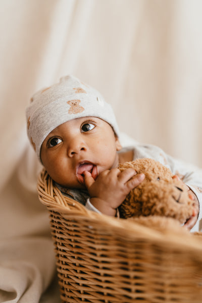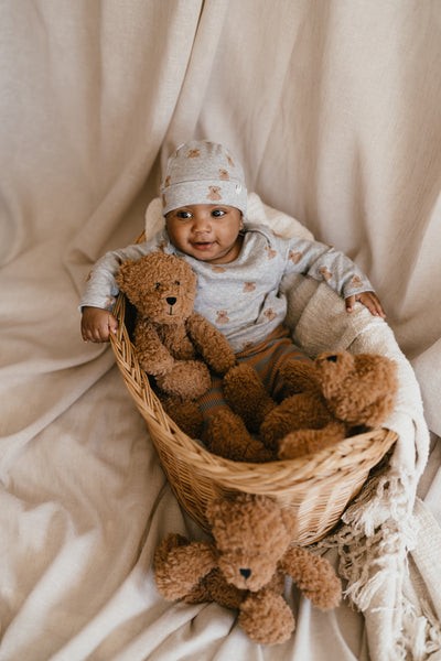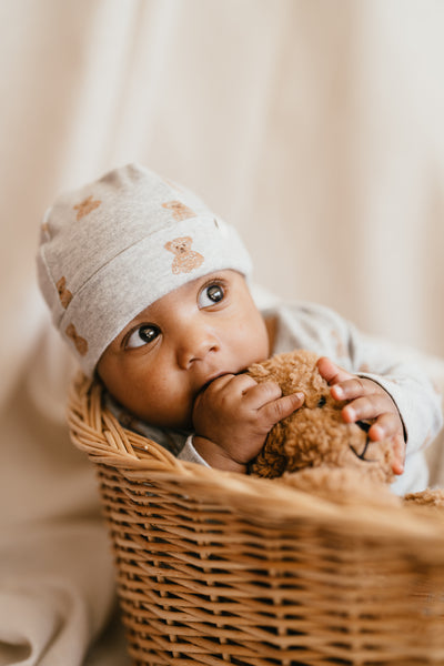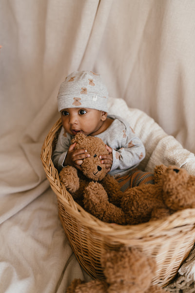 Dit prachtige mutsje van de nieuwe collectie van A Tiny Story is gemaakt van heerlijk zacht organisch katoen. Deze stof voelt zacht aan het nog kwetsbare hoofdhuidje van jouw kindje. Hierdoor kan jouw kindje zich comfortabel en vrij bewegen en langzaam de wereld gaan ontdekken. Dit heerlijke zachte mutsje zorgt ervoor dat jouw kindje op temperatuur blijft. Maar je creëert ook in een handomdraai een leuke outfit voor jouw kindje. Ondank het printje kun je met deze neutrale kleuren  eindeloos de leukste combinaties maken. Het mutsje bevat elastiek waardoor je het eenvoudig aan kunt trekken. Erg leuk te combineren met de bijpassende longsleeves, het rompertje en het broekje. Met de nieuwe collectie van A Tiny Story creëer je binnen een handomdraai een leuke outfit voor je kindje.