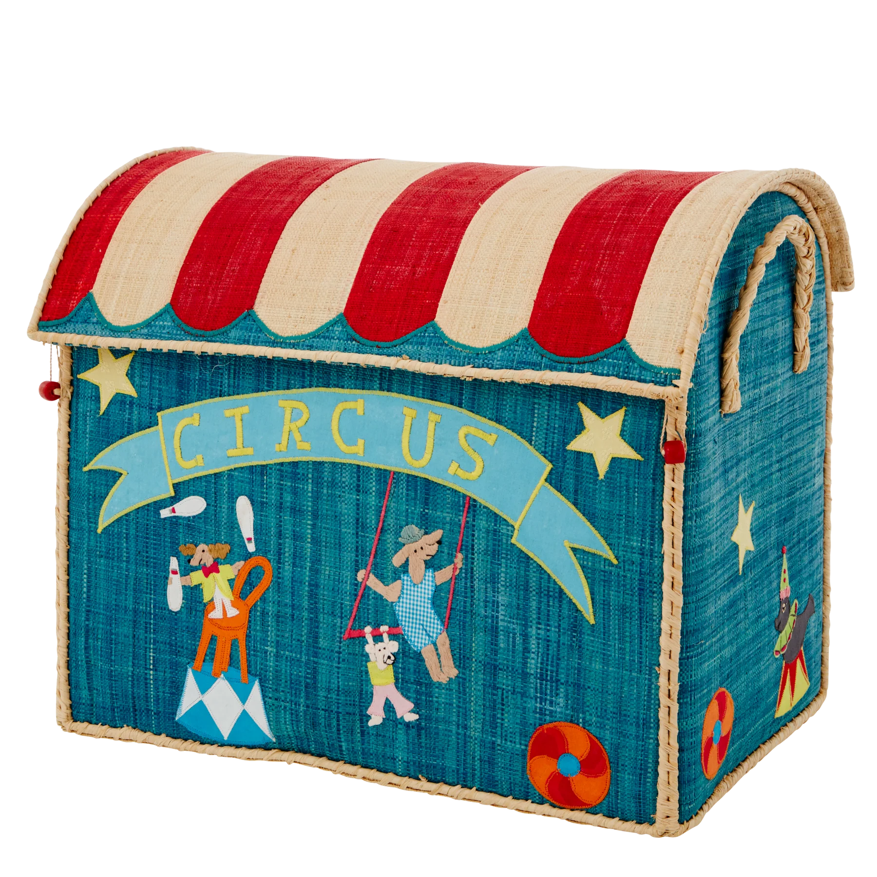 Rice - Opbergmand - Raffia - Circus - Blauw - Large