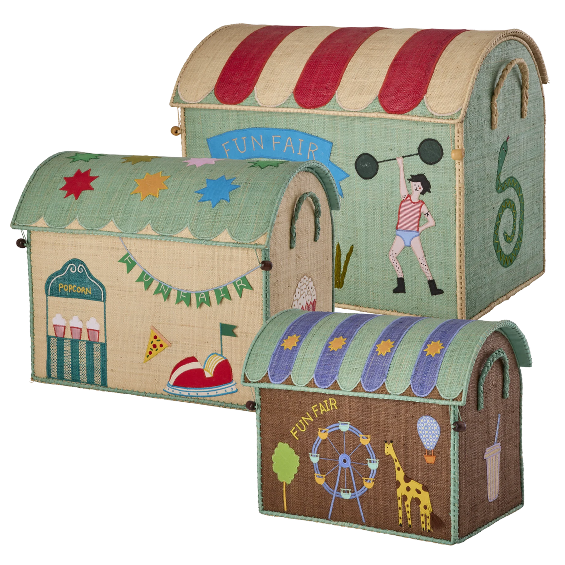 Rice - Opbergmand - Raffia - Fun Fair - Blauw - Large
