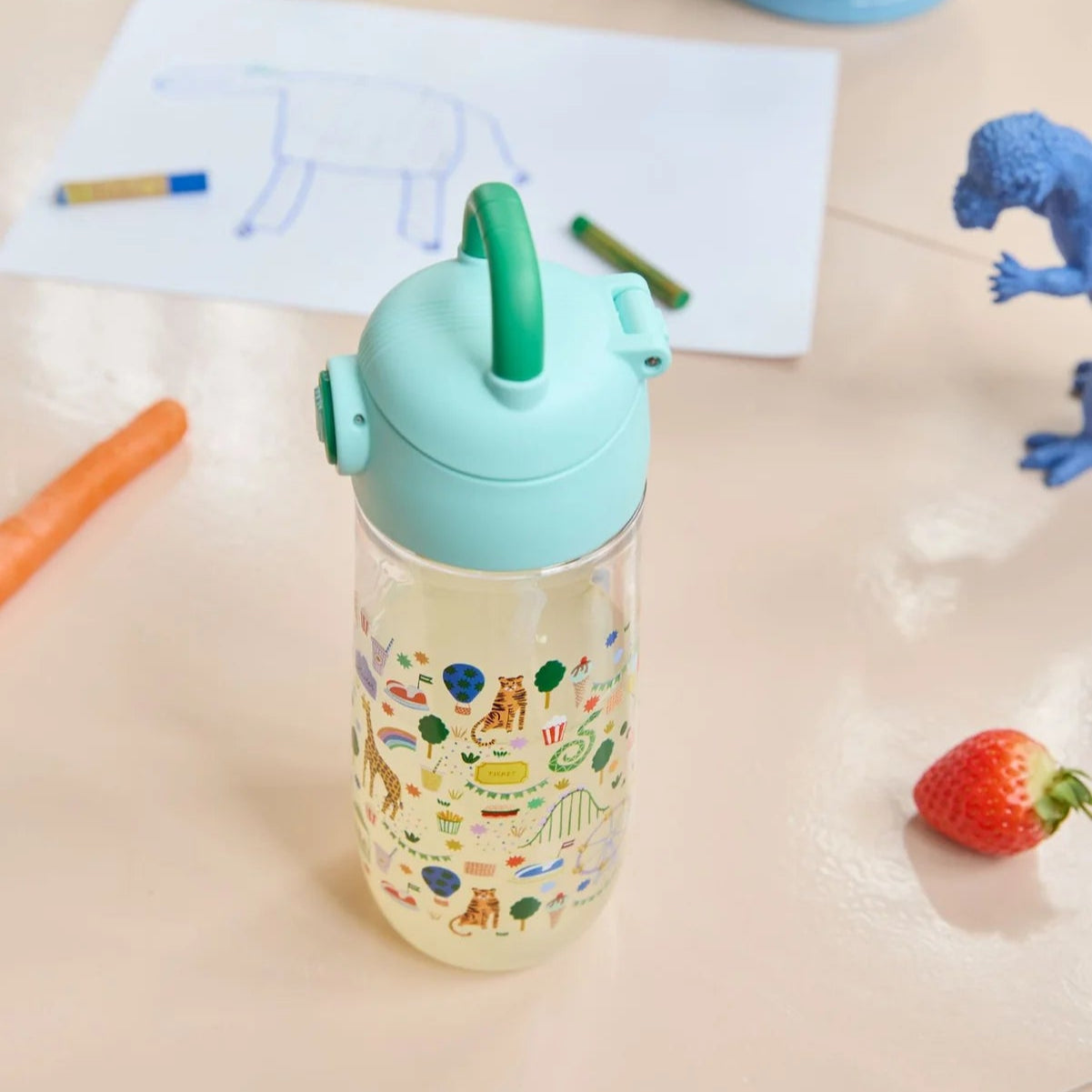 Heb je wel eens dorst onderweg? Met deze leuke kinderdrinkfles met de "Fun Fair" (Kermis) print kan je gemakkelijk onderweg iets te drinken meenemen. De fles is makkelijk te gebruiken voor kleine vingertjes en de gehele fles is vaatwasmachinebestendig. Ideaal dus! De fles heeft een inhoud van 550 ml. De fles is niet bestand tegen kokend water.